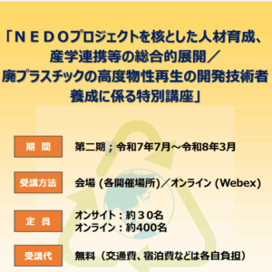 【お知らせ】NEDOプロジェクト特別講座 第二期 開催中